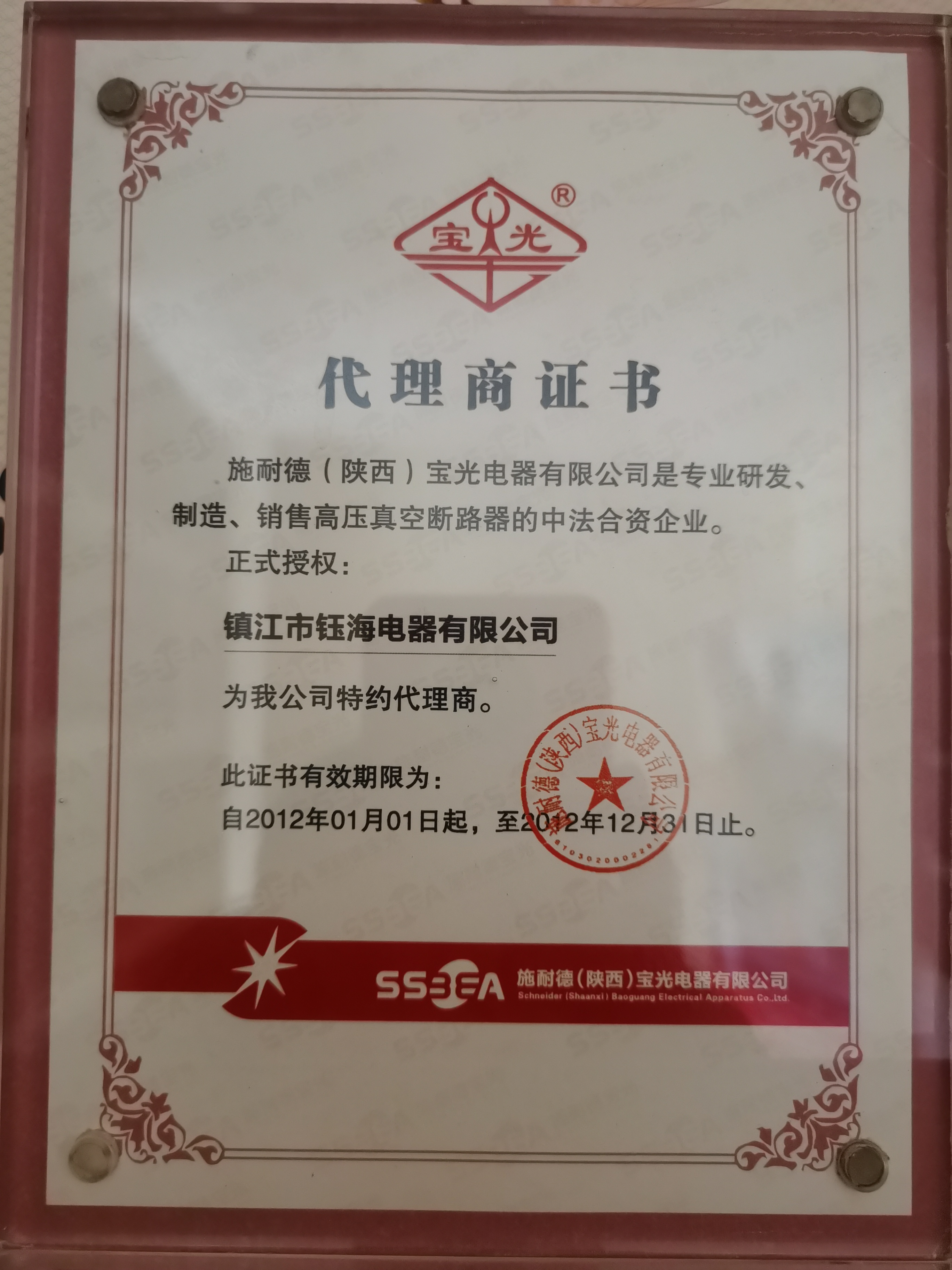 2012代理商證書